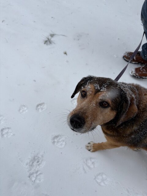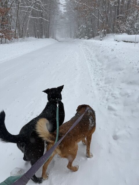 And pictures of the pups looking at her lovingly after she had cleared their driveway and was eating lunch.