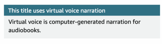 This title is narrated with Virtual Voice, computer-generated narration for audio books.