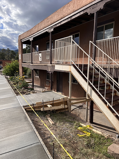 But the stairs are rusting out so they are going to remove them and replace them with stairs going straight down to the new concrete pad they have installed.