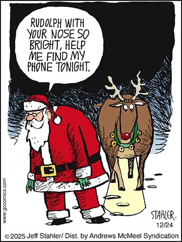 Pity Santa can’t ask Mrs. Claus to call his phone. Poor Tom has to do that all the time when I misplace mine. Locator! Locator!