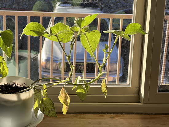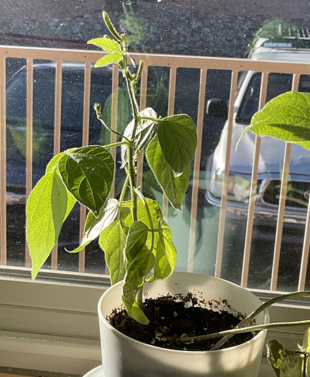 This is the time of year hat the window sill gets the most direct light because of the angle of the sun. I didn’t expect the bean plants to live this long.