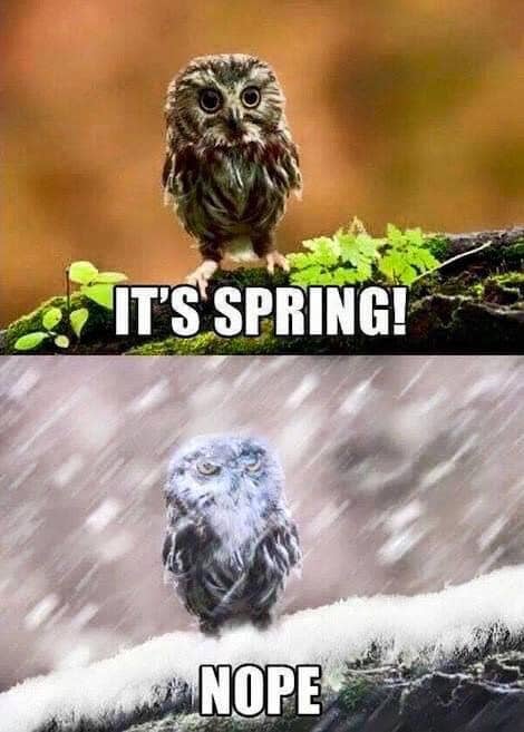 I love these. My favorite is the owl. That one made me laugh and it’s so true around here. One day it will feel like spring and the next we’re plunged back into winter.